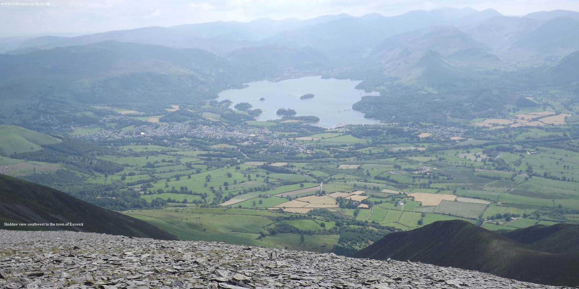 top of Skiddaw and looking down the west